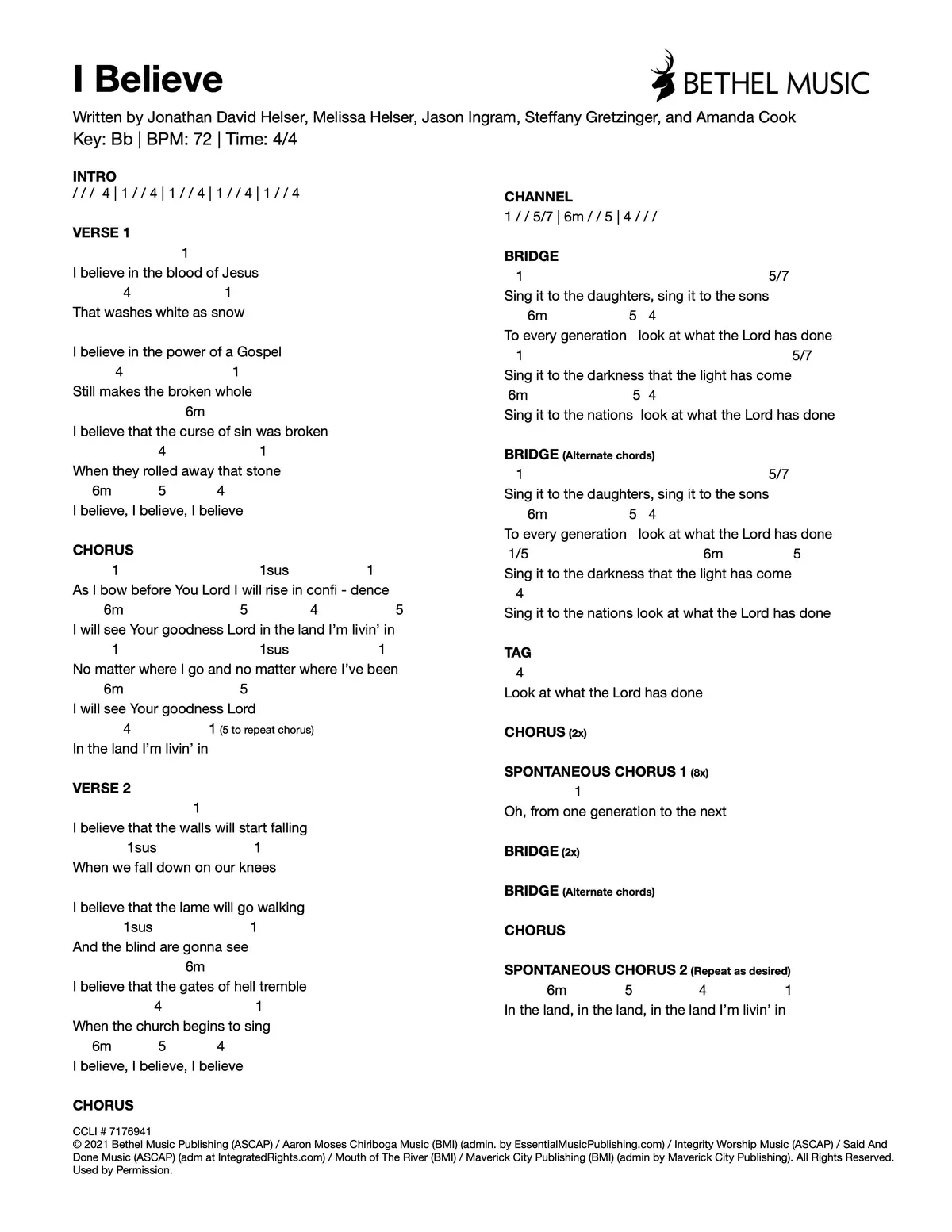 © 2021 Bethel Music Publishing (ASCAP) / Quiltmaker Music (ASCAP) (admin by Bethel Music Publishing) / Be Essential Songs (BMI) / My Magnolia Music (BMI) / We Are TIM Music (ASCAP) / Wonder Meadow Music (ASCAP) (adm. at CapitolCMGPublishing.com) / All Essential Music (ASCAP) / Maison Publishing (ASCAP) (admin. by EssentialMusicPublishing.com). All Rights Reserved. Used by Permission.